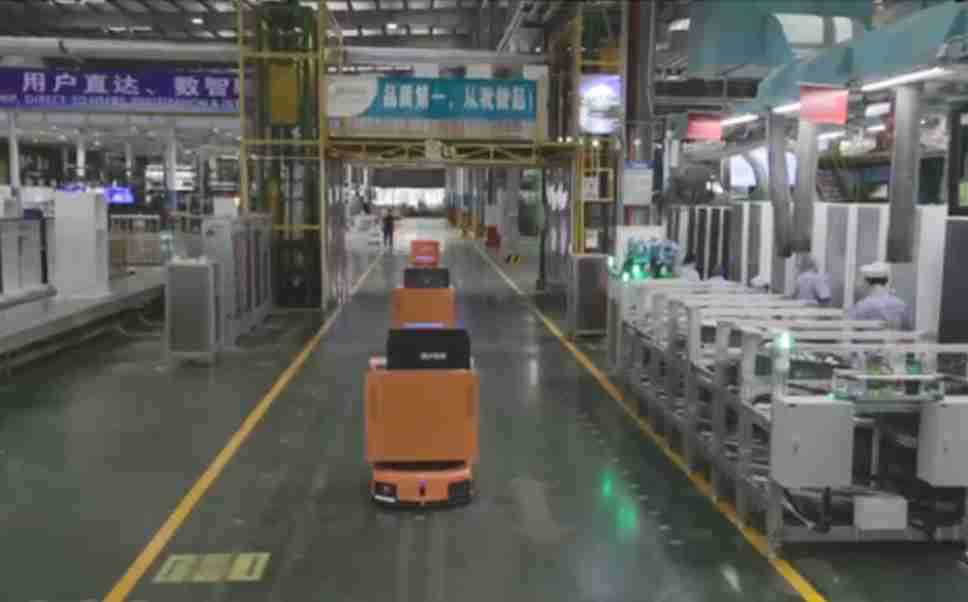 为车载冰箱物流配送打造的智能解决方案,,,,包含产中物流通过潜伏举升AMR搬运至线边,,产后成品物流智能仓储,,,流程包含产中物流智能齐套入库,,,线边安灯叫料AMR智能配送至线边,,成品入库、、出库,,,,通过无人堆高车机器人,,,智能仓储管理替代人工作业管理,,,实现更高存储、、更高效率、、、更具柔性化的解决方案。。。。